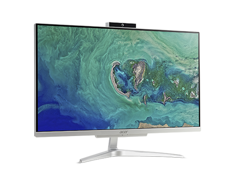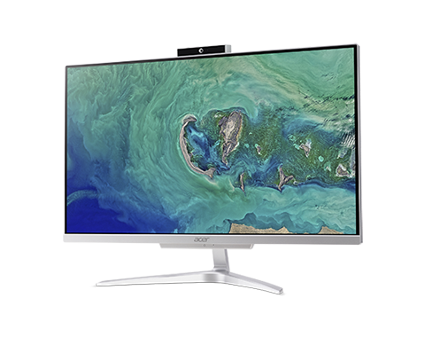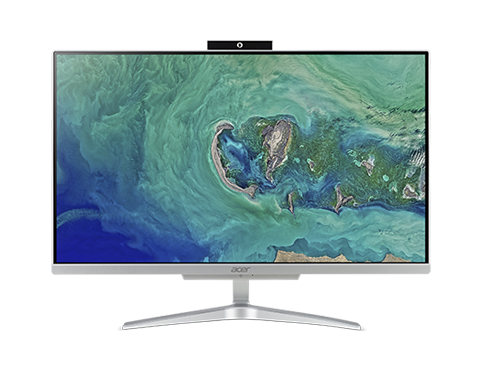 ACER Aspire C24-865. Tamanho do ecrã na diagonal (pol.): 60,5 cm (23.8"), Tipo de HD: Full HD, Resolução: 1920 x 1080 pixels. Família de processador: Intel Core i5 ,Modelo de processador: i5-8250U, Frequência do processador: 1,6 GHz. Capacidade da memória incorporada: 8 GB, Tipo de memória incorporada: DDR4-SDRAM. Capacidade da drive SSD: 256 GB, Armazenamento: SSD. Cor: Prateado. Sistema operativo instalado: Windows 10 Home. Teclado e rato incluído.
